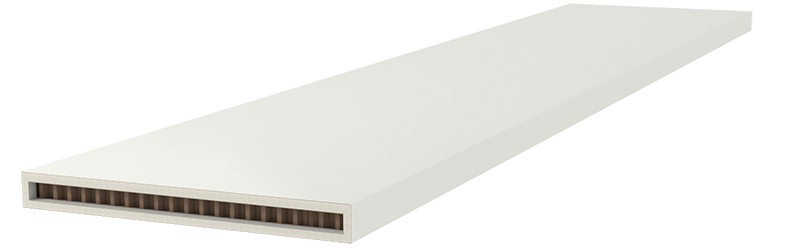 Module d’agencement de 95 mm d’épaisseur 1 ou 3 chants finis sans bande, , constitués d’une âme alvéolaire en nid d’abeille et de parements contre-collés en plaques de