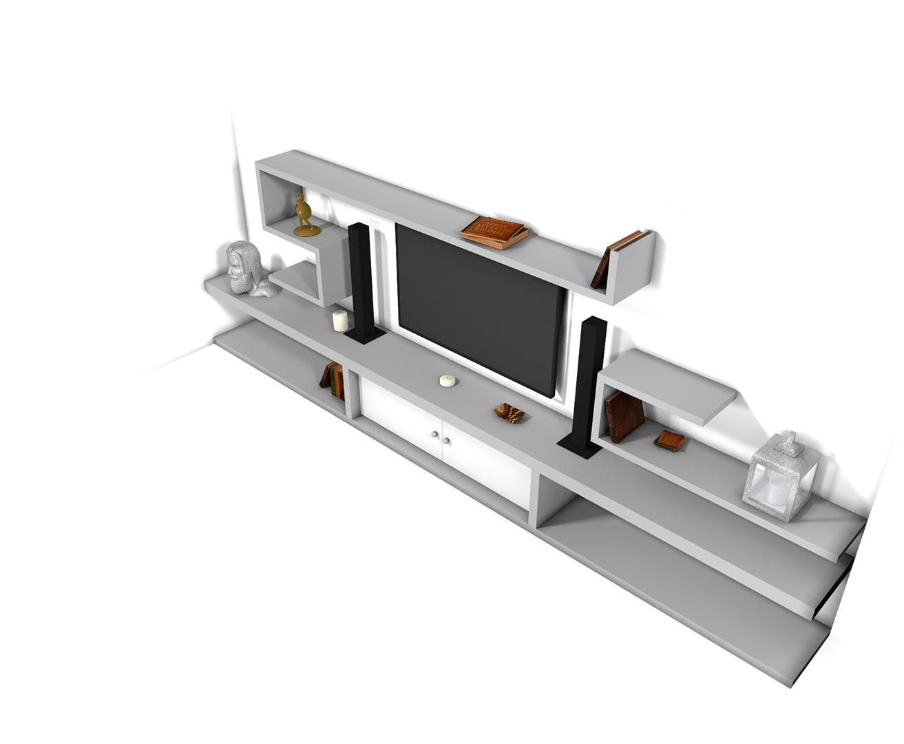 plâtre rainurées et usinées de 12.5 mm d’épaisseur. Ces éléments peuvent être redécoupés et transformés dans le cadre de réalisations sur-mesure : bibliothèque sur mesure, meuble TV, bureau étagère…