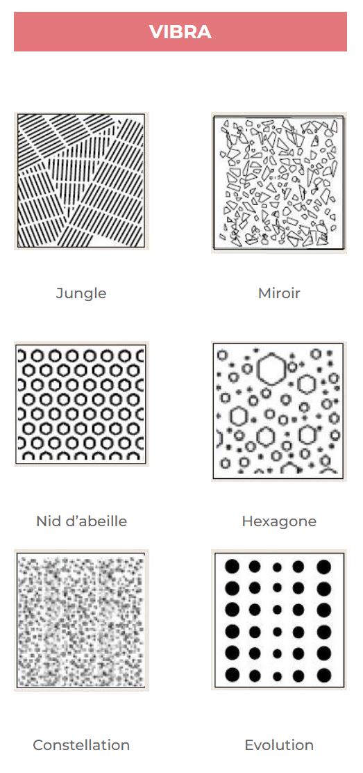 Avec Vibra, optez pour de nouvelles perspectives esthétiques et originales grâce à des modèles de perforations inédits, testés en laboratoire.