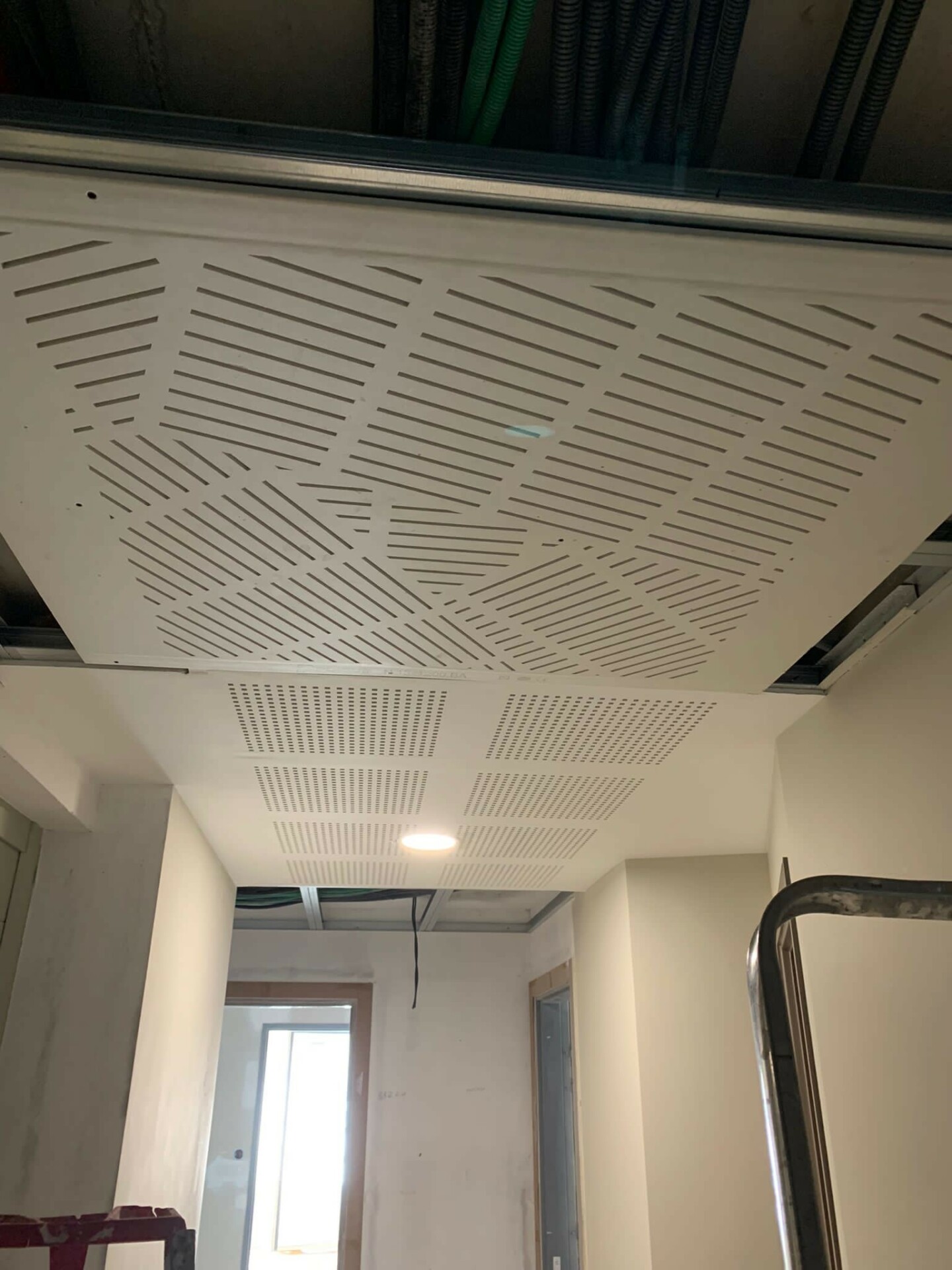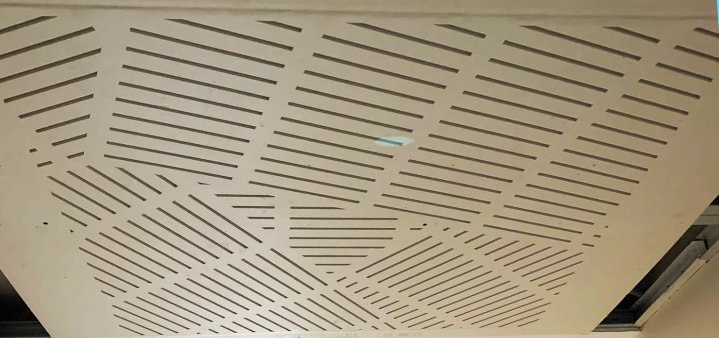 Plafond acoustique et décoratif spécial couloir en plaque de plâtre, design des perforations CLASSIQUE. Avec un format adapté à vos couloirs, les plaques perforées ALTO de 1,30 m ou 1,50 m de largeur permettent de ne poser qu’une seule plaque sans traitement des bandes, un véritable gain de temps.
